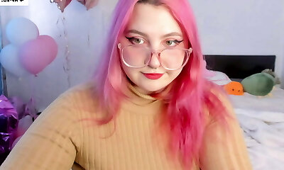 Chubby bunny girl plays with her cock-squeezing fat pussy