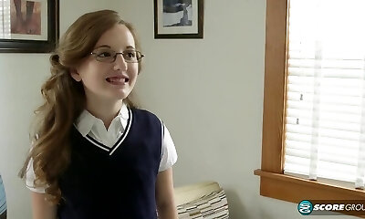 Nerdy schoolgirl gets her first internal cumshot from her stepfather