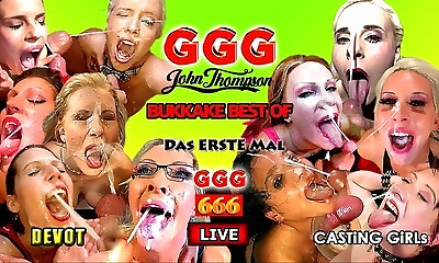 Delightful blonde stunner is sucking many black cocks, one after the other and eating some fresh spunk