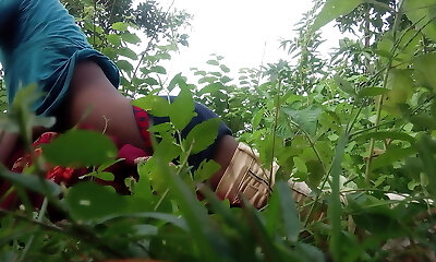 Indian desi village young married couple couldn't t have fun at home so had utter fun on the jungle.