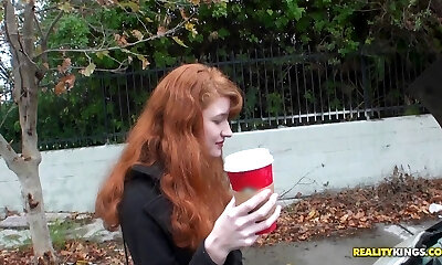 Ginger-haired model Ariandra Oily takes money to get fucked in the woods