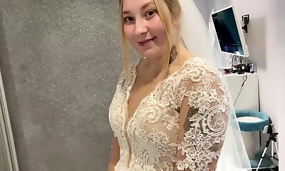 Russian married duo could not resist and screwed right in a wedding dress.