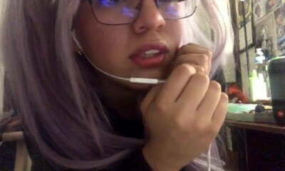 Pink haired amateur emo webcam sweetheart enjoys petting her holes