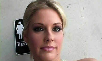 Whorish Alexa Jaymes sucks a strong hot cock of Chris Strokes in the restroom