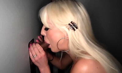 Gloryhole fun with horny blonde Sunny Lane sucking a man sausage