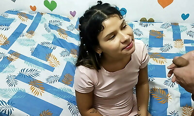 My cherry stepdaughter sucks a dick for the first time, three-way with my wifey double cum on her beautiful innocent face