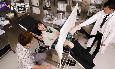 Japanese doctor examines her milk cans and pussy and fucks the damsel