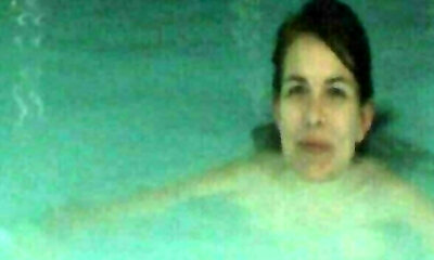 Swimming in sauna pool nymphs display nude bodies on spy cam
