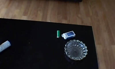Blond GIRL ENJOY HER CIGARRETE WITH A DILDO STICK IN HER Taut PUSSY