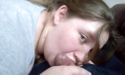 deep throat, delicious choking, gobbling and making lots of spit bubbles on the pervert's fuckpole